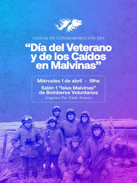Sunchales28/03/2026La Municipalidad de Sunchales desde la Secretaría de Gobierno, conjuntamente con Bomberos Voluntarios de Sunchales y el Centro y Museo de Ex Combatientes de Malvinas de Rafaela y Departamento Castellanos invitan a toda la comunidad a participar de la Vigilia en conmemoración del Día del Veterano y los Caídos en Malvinas a desarrollarse el próximo miércoles 1 de abril desde la hora 19 en las instalaciones de Bomberos Voluntarios.